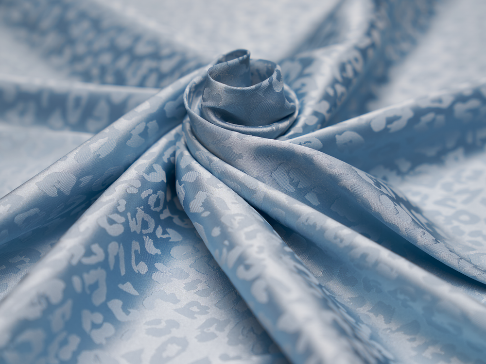 LIGHT BLUE SILKY JACQUARD SATIN fabric by the yard - Cheetah jacquard pattern - flowy fabric -