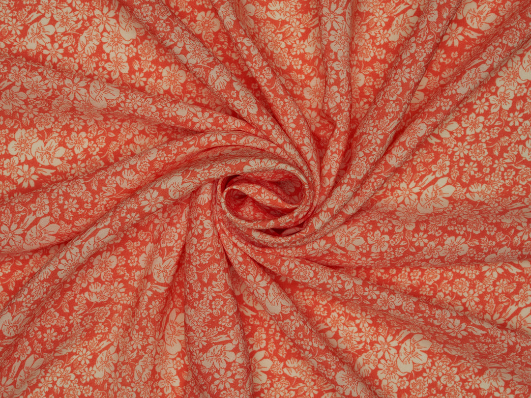 Woolpeach Fabric By The Yard - Orange White Floral Print