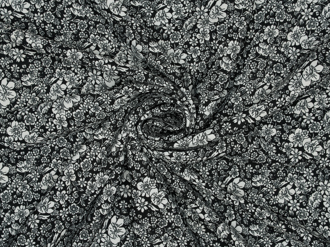 Woolpeach Fabric By The Yard - Black And White Floral Print
